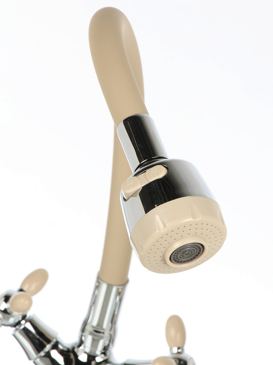 Смеситель для кухни Антей Радуга 5770718-ANT: гибкий излив, керамическая кран-букса, стильный беж — удобство и долговечность для вашей кухни.