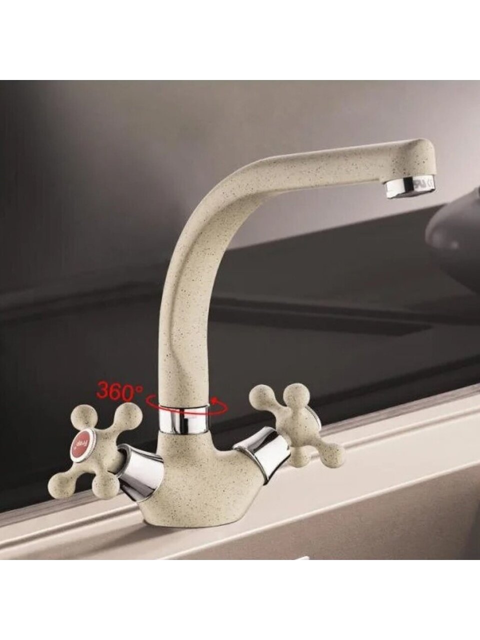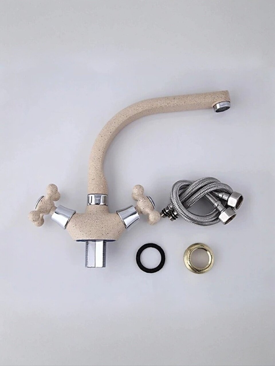 Смеситель для кухни Frap F5408-21 — это оптимальный выбор для тех, кто ищет современный и надёжный кран в бежевом цвете. Благодаря поворотному высокому изливу (19,2 см) и гибкой подводке, он удобен как для стандартных, так и для глубоких моек. Двухвентильная система управления с керамической кран-буксой обеспечивает долгий срок службы и защиту от протечек — этот смеситель прослужит дольше аналогов с обычными резиновыми прокладками.