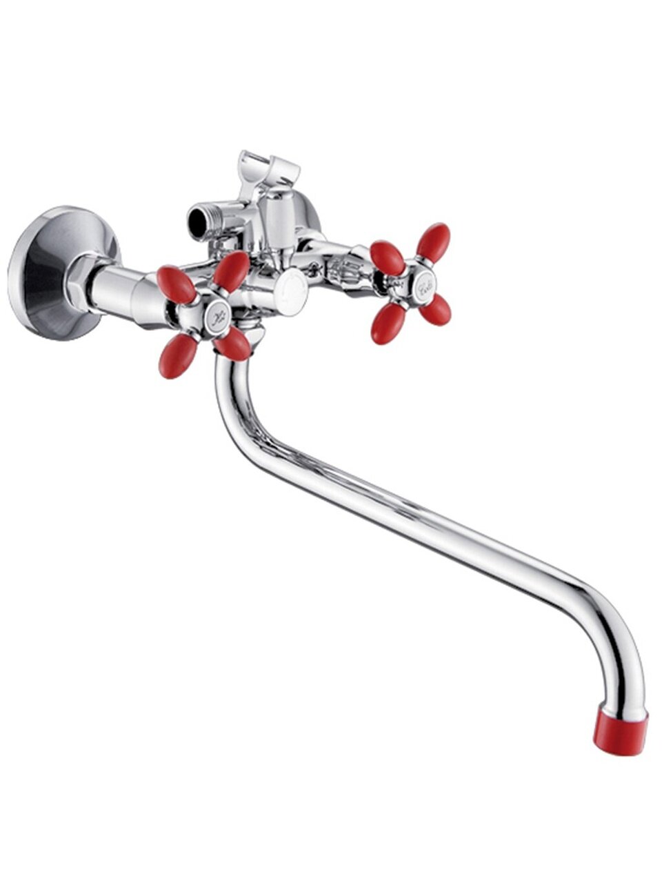 Смеситель для ванны Эверест B22-071C: стильный красный акцент, долговечная керамика, идеальное решение для комфортного душа и ванны по выгодной цене.