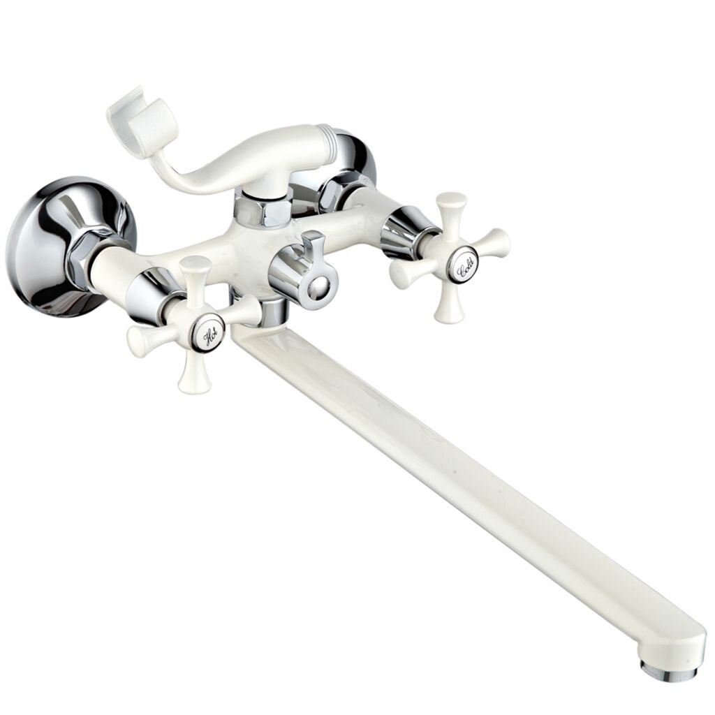 Смеситель для ванны Эверест B23-0647 — белый дизайн, керамическая кран-букса, длинный излив 35 см. Надёжное решение для ванной, дома и дачи.