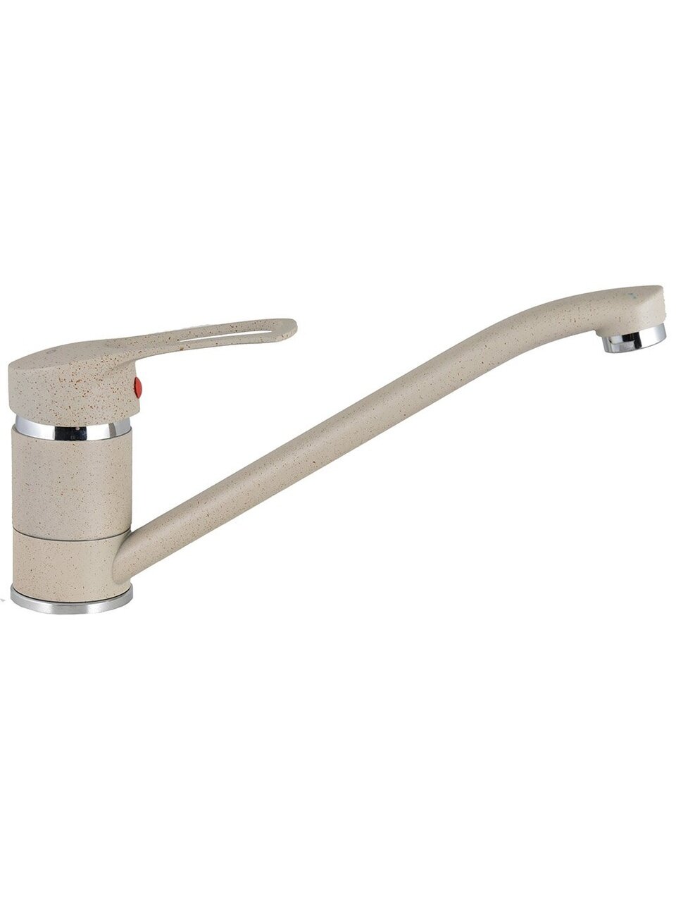 Смеситель для кухни Juguni с керамическим картриджем — оптимальный выбор для тех, кто ищет надёжность и простоту в эксплуатации. Благодаря поворотному среднему изливу (21 см) и высоте 10,5 см, модель подходит для стандартных кухонных моек и обеспечивает комфорт при мытье посуды. Матовый бежевый цвет смотрится стильно и не маркий даже при частом использовании.