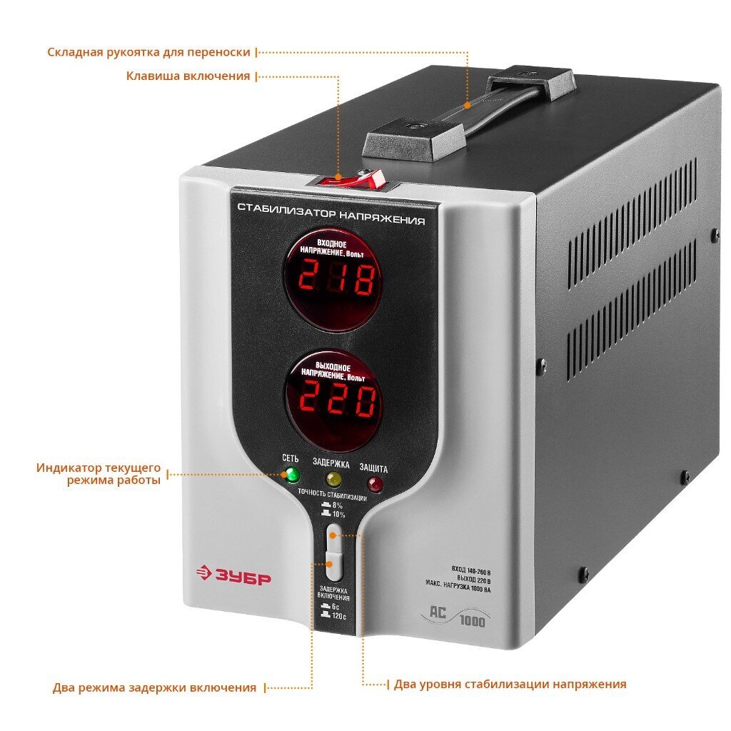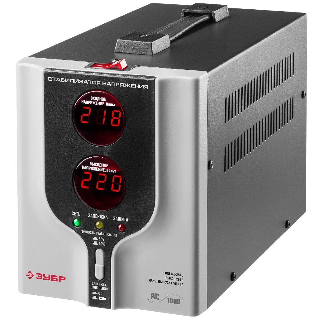 Вы можете приобрести «Стабилизатор напряжения Зубр, Профессионал, 1 кВт, 140-260 В, автомат, 59375-1» и другие товары в нашем интернет-магазине в Курске по низким ценам и с бесплатным самовывозом.