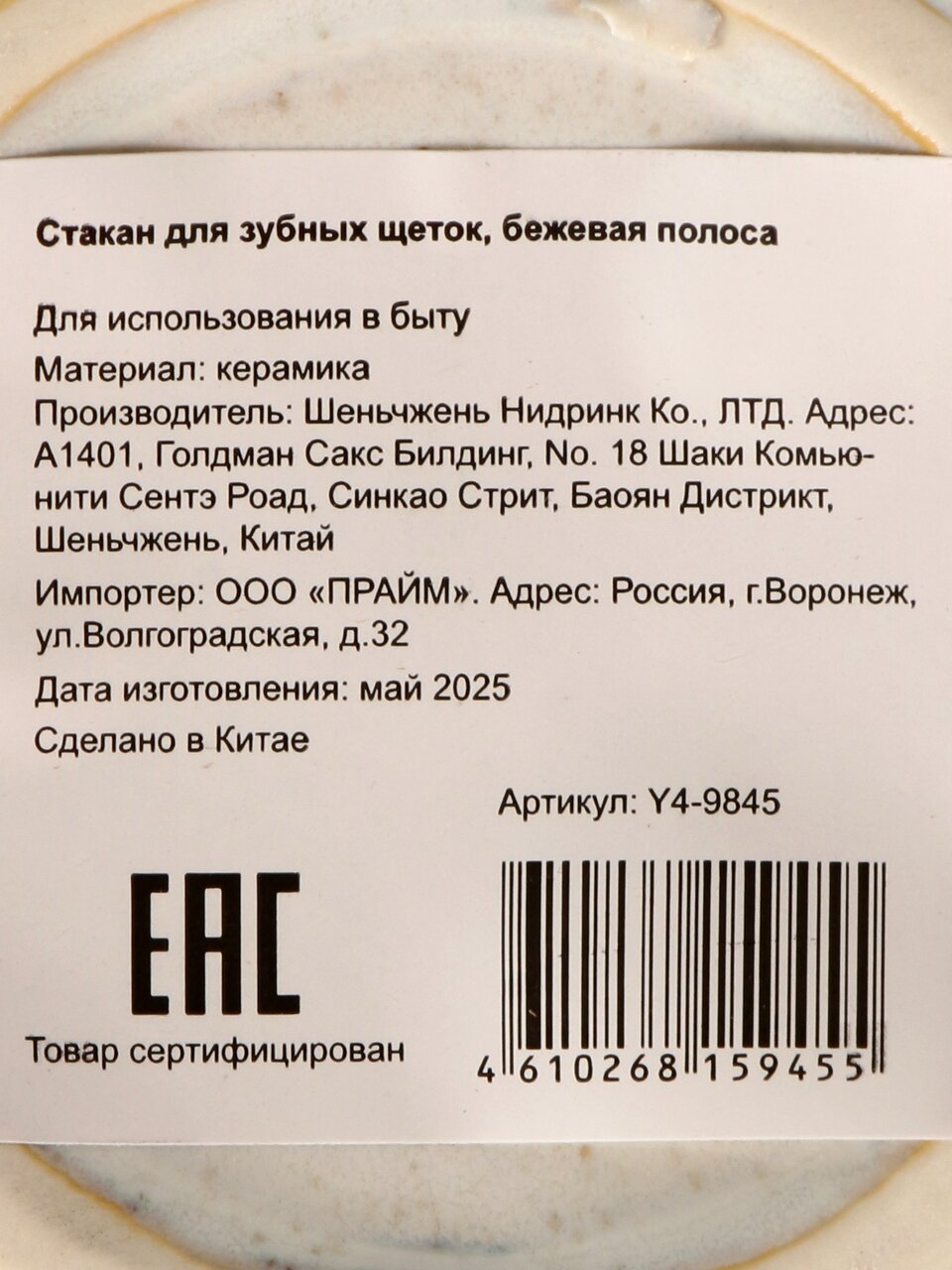 Стакан для зубных щеток, керамика, бежевая полоса, Y4-9845