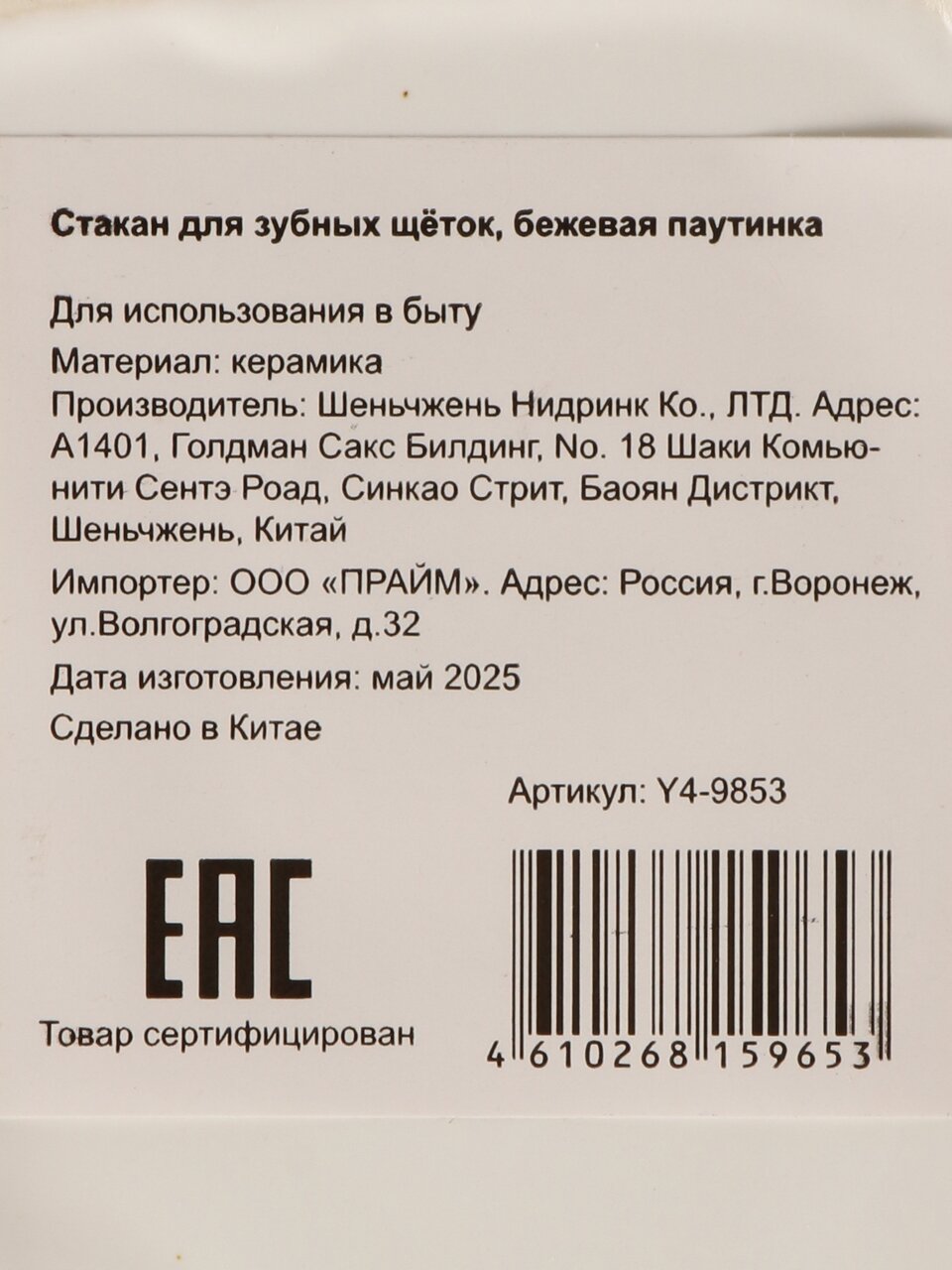 Стакан для зубных щеток, керамика, бежевая паутинка, Y4-9853