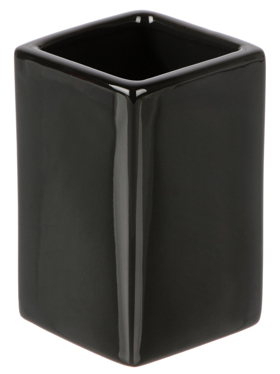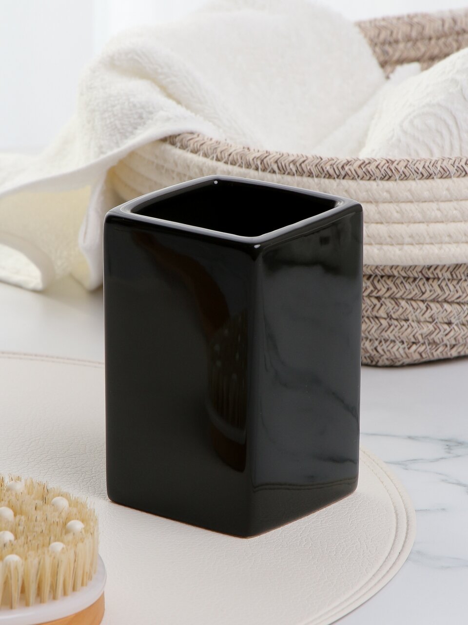 Стакан для зубных щеток из черной глянцевой керамики 7×7×11 см: современный акцент для ванной, который решает вопрос хранения и стиля за разумную цену.