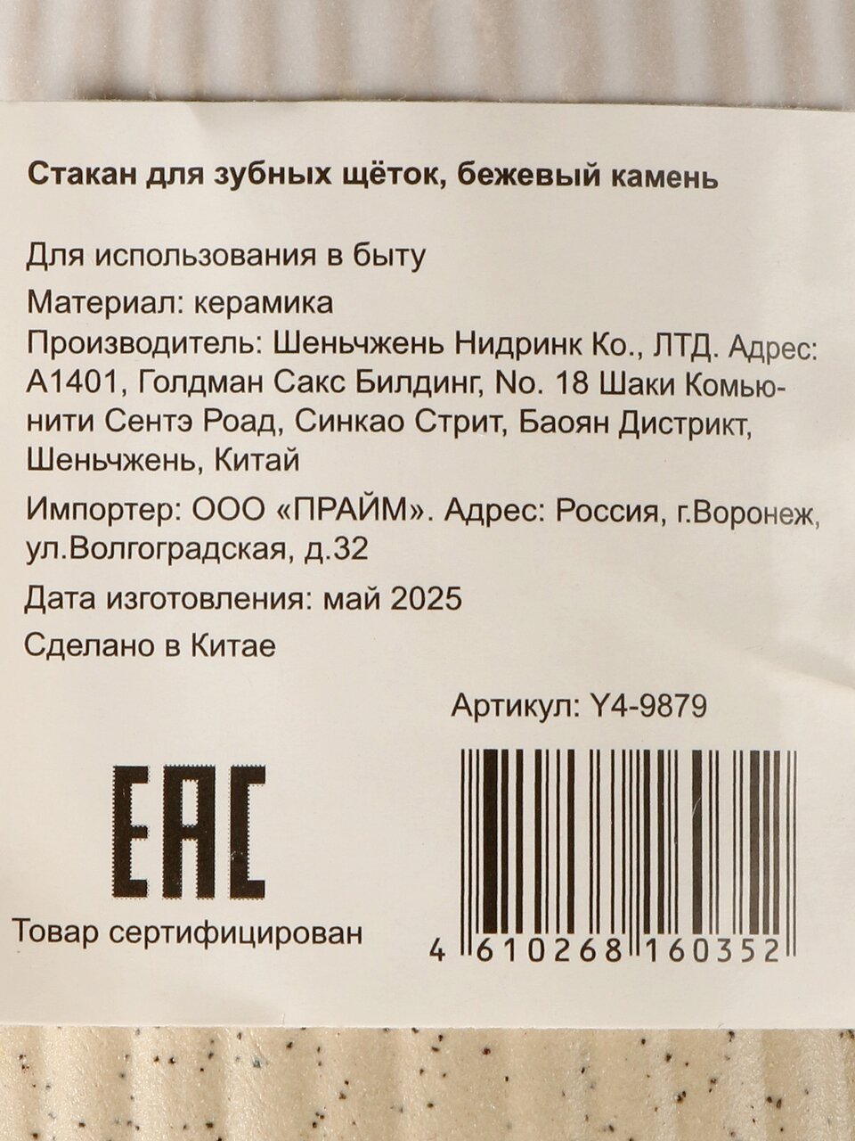 Стакан для зубных щеток, керамика, бежевый камень, Y4-9879