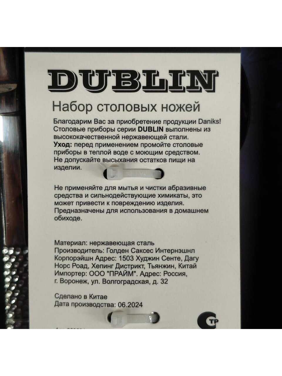 Если вы ищете, какой нож выбрать для сервировки или чем отличается этот набор от других, обратите внимание: Daniks Dublin не требует сложного ухода, но не предназначен для мытья в посудомоечной машине. По сравнению с аналогами из пластика или с декоративным покрытием, эти ножи долговечнее, не теряют внешний вид и подходят для любых блюд. Часто спрашивают, подходит ли такой нож для подарка — ответ: да, особенно к 8 марта или 23 февраля, даже без подарочной упаковки.