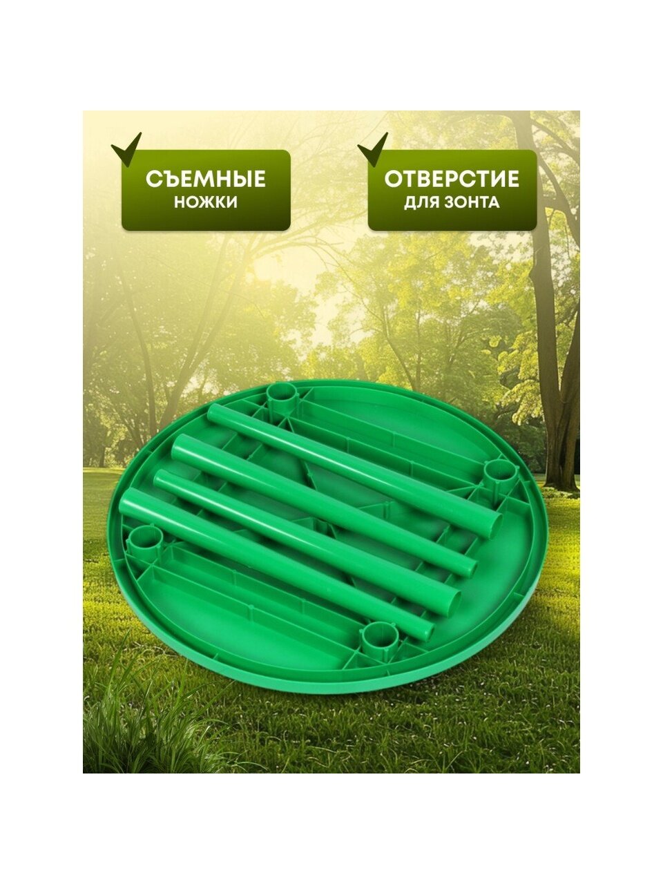 - Особенности конструкции: оснащен отверстием для установки зонта.