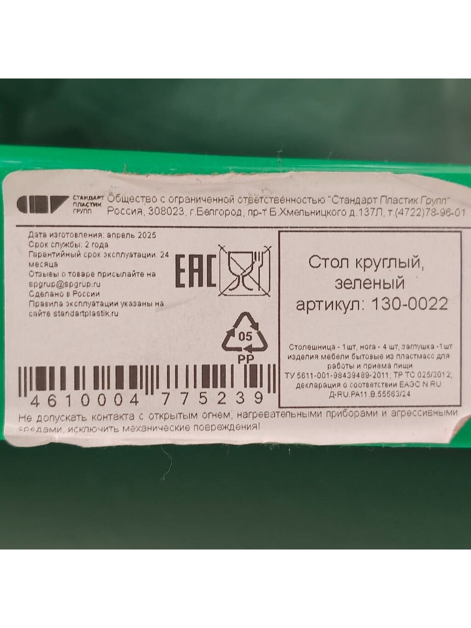 Вы можете приобрести «Стол пластик, Стандарт Пластик Групп, 91х91х71 см, круглый, пластиковая столешница, зеленый, 130-0022» и другие товары в нашем интернет-магазине в Старом Осколе по низким ценам и с бесплатным самовывозом.