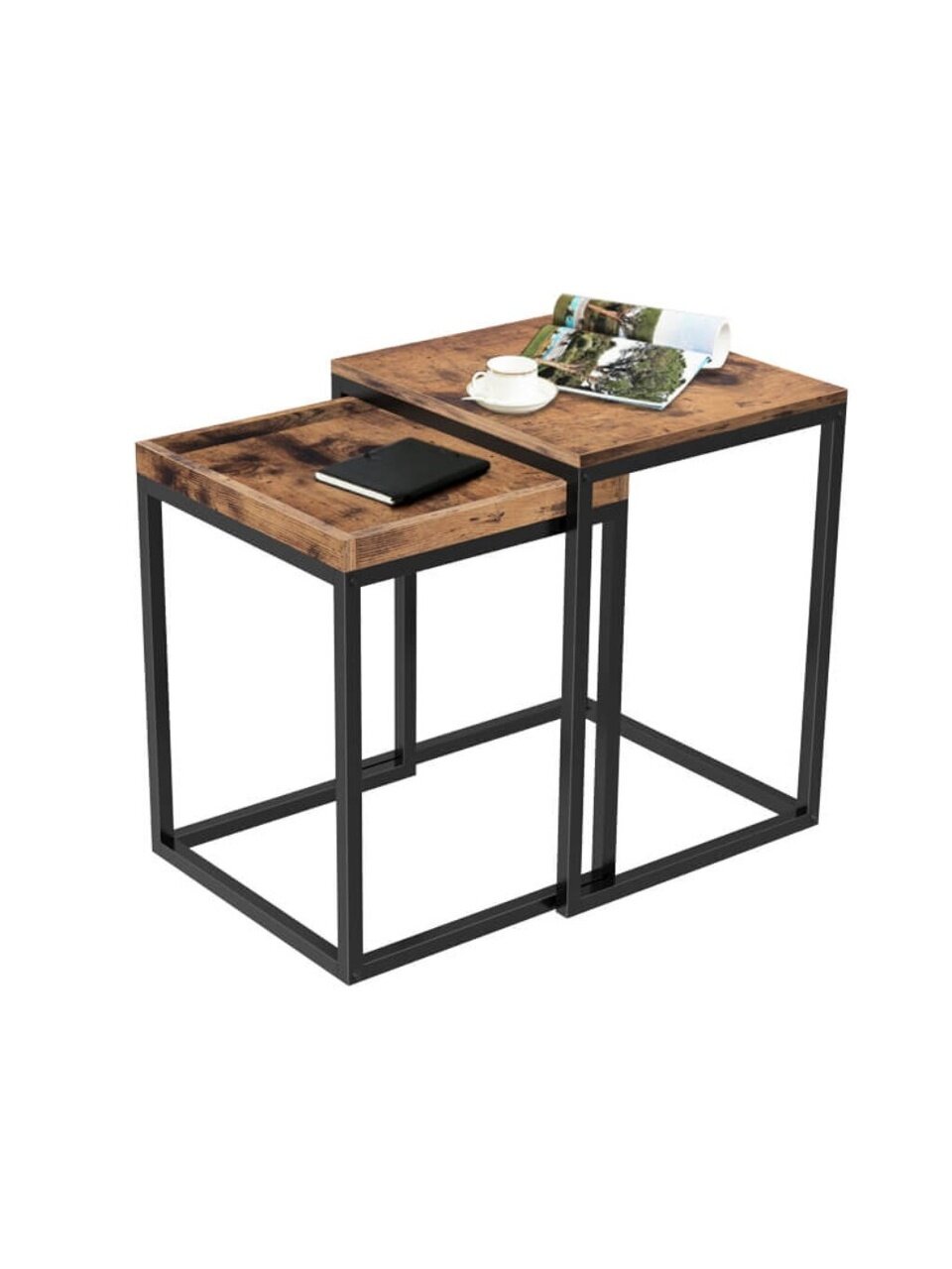 Этот набор из двух боковых столиков в очаровательном индустриальном стиле готов предложить вам чашку кофе, закуски и все, что вам нужно для киномарафона. Или разместите свою фоторамку и милые суккуленты на столешнице, чтобы придать им особый стиль.