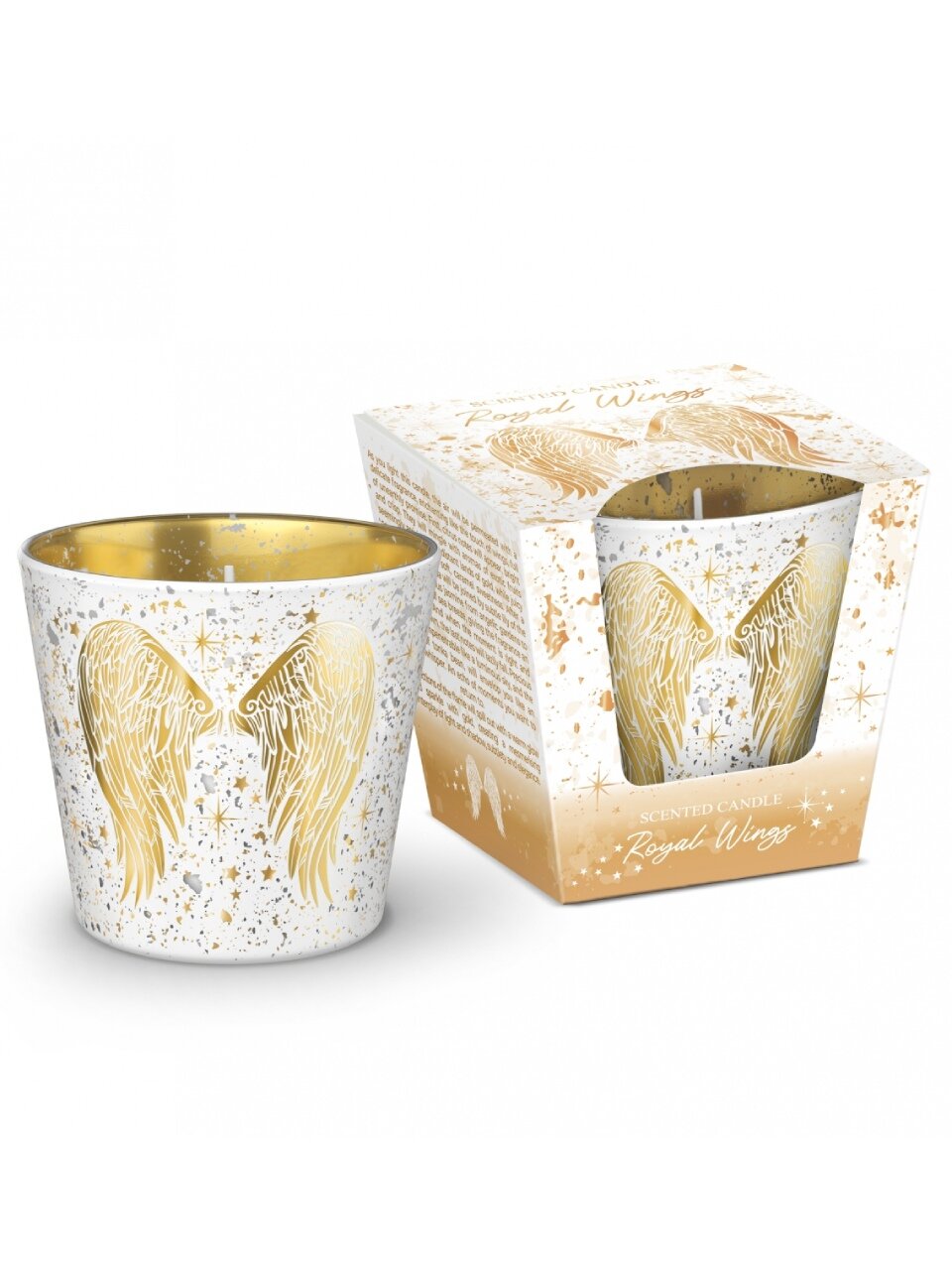 Свеча Bartek «Королевские крылышки» — подарок с ароматом уюта: 35 часов горения, стильный золотой стакан, идеальна для дома и праздника.