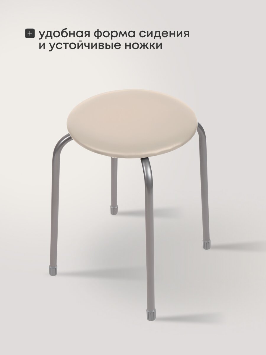 - Уникальный дизайн: стильный табурет с круглым сиденьем из винилискожи на четырех металлических опорах — гармонично впишется в любой современный интерьер.