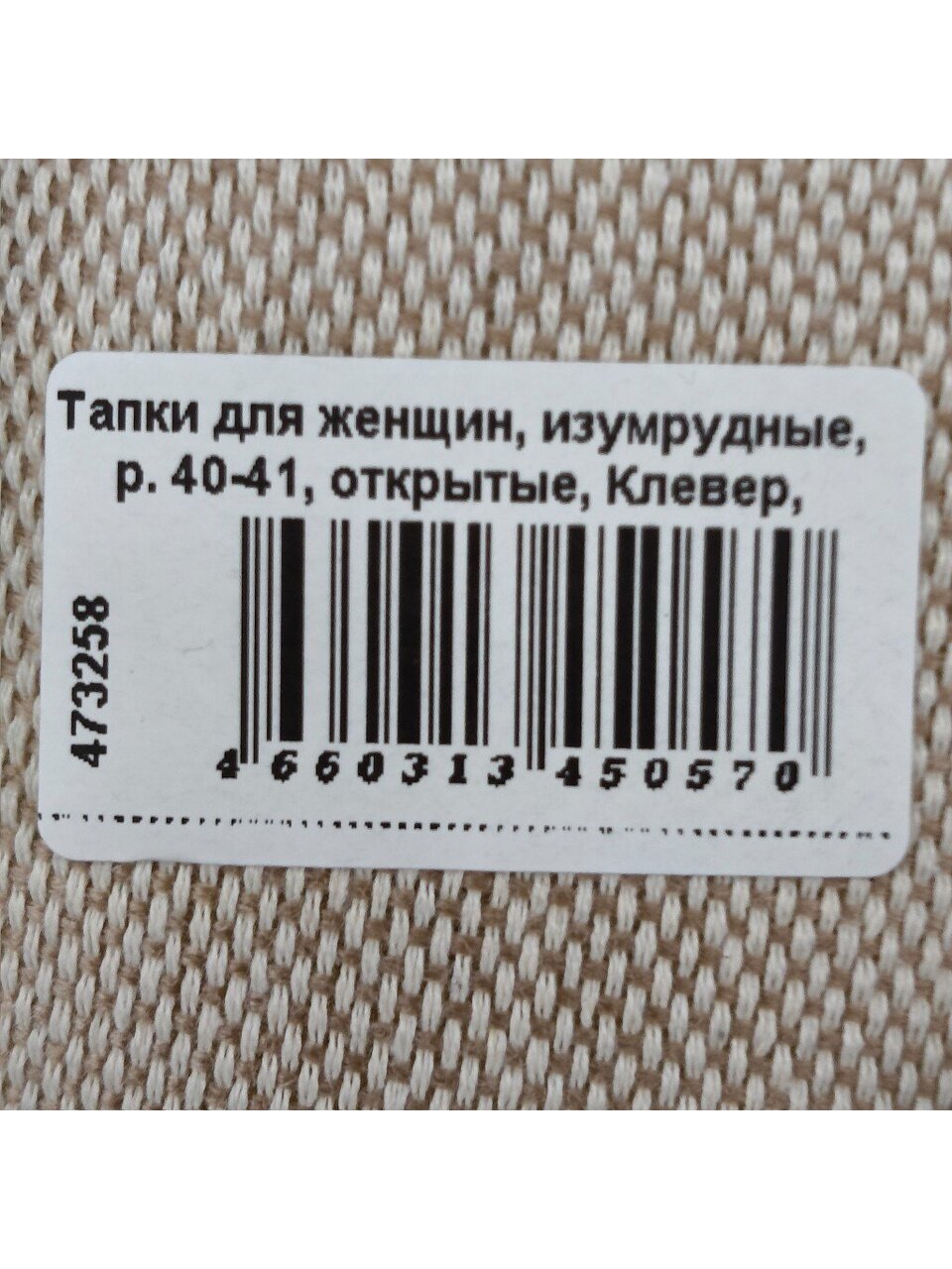 Вы можете приобрести «Тапки для женщин, изумрудные, р. 40-41, открытые, Клевер, A210169» и другие товары в нашем интернет-магазине в Обнинске по низким ценам и с бесплатным самовывозом.
