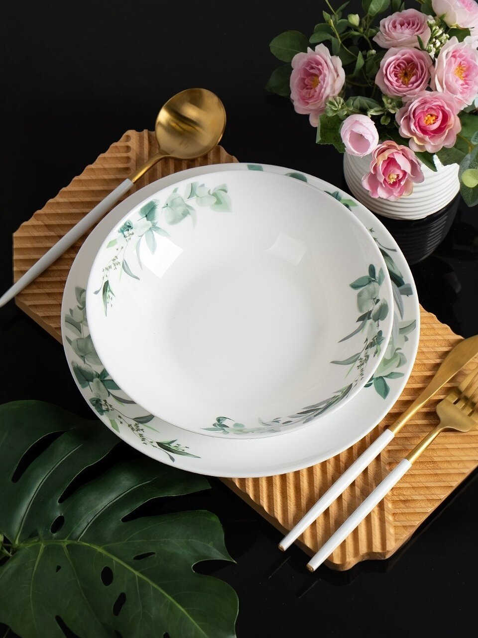 Тарелка суповая Daniks Эвкалипт 20 см — стильная стеклокерамика для сервировки и ежедневного комфорта: объём 700 мл, подходит для СВЧ и посудомоечной машины.