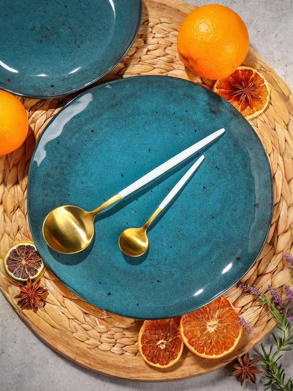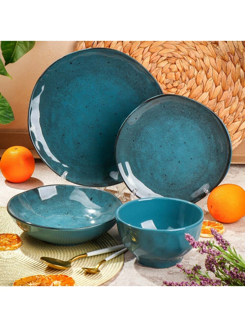 Тарелка обеденная Domenik Stone Turquoise 26 см — стильная керамика для сервировки и повседневного комфорта. Лучший выбор для дома и дачи: прочная, удобная, подходит для СВЧ и посудомоечной машины.