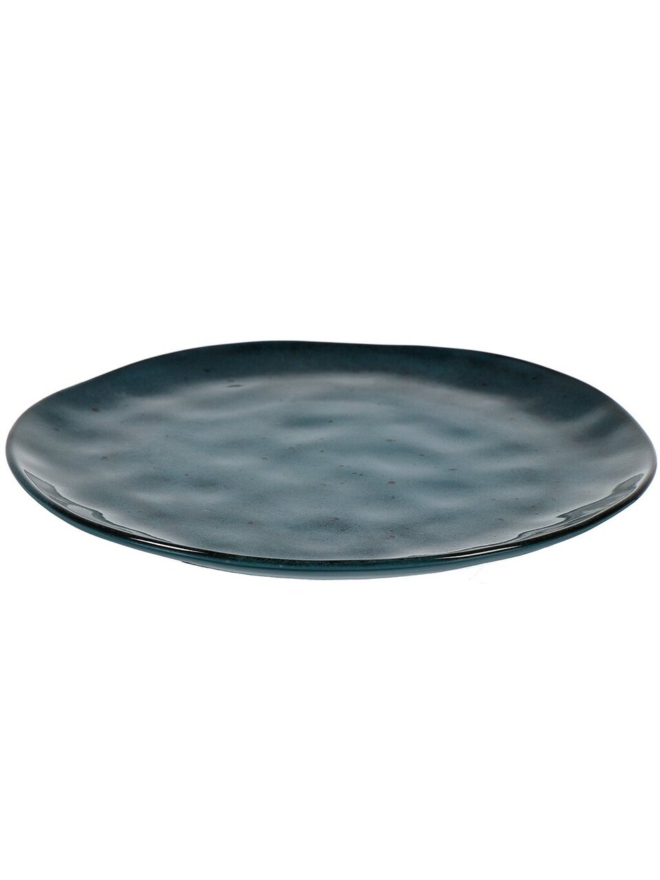 Тарелка круглая, диаметр 26 см, выполнена из каменной керамики, цвет — синий с крапинкой.