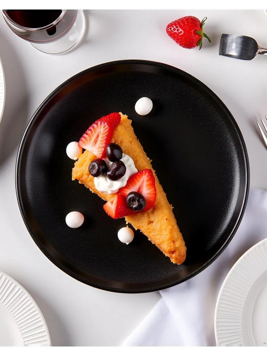 Диаметр составляет 15 см, что оптимально для десертов, закусок и небольших порций. Форма — круглая, цвет — однотонный черный.