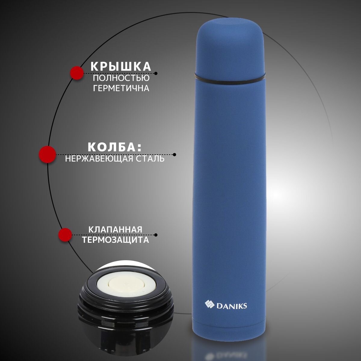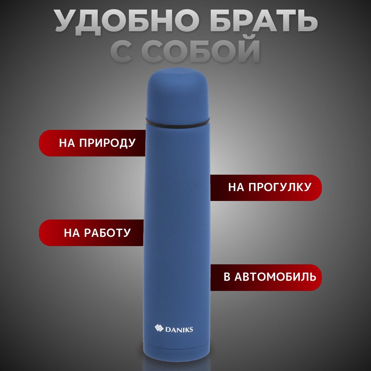 Термоc Daniks обладает высоким качеством, надежностью и эстетичным дизайном. Горячее остается горячим, а холодное - холодным. Такой термос станет незаменимым в машине, на отдыхе или в путешествии.