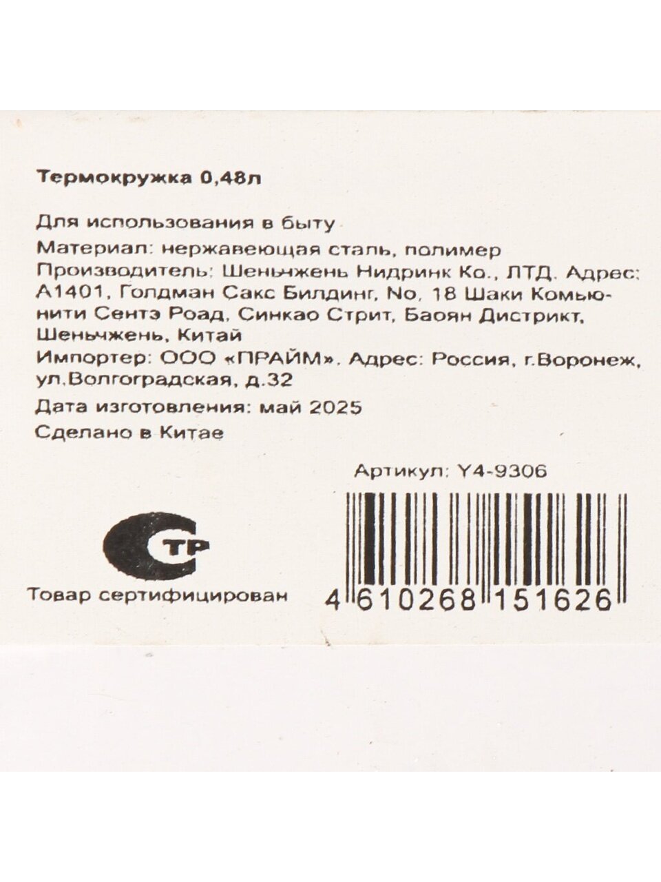 Термокружка 0.48 л из нержавеющей стали — это современное решение для тех, кто ценит мобильность и заботится о температуре своих напитков. Благодаря двойным стенкам и прочному корпусу, она сохраняет тепло и холод до 4 часов, что особенно актуально для офисных работников, студентов и автомобилистов. Как выбрать термокружку для города или для дачи? Обратите внимание на сочетание компактности (высота 16.4 см, диаметр горлышка 7.4 см), герметичности и удобства использования — именно эти параметры реализованы в данной модели.