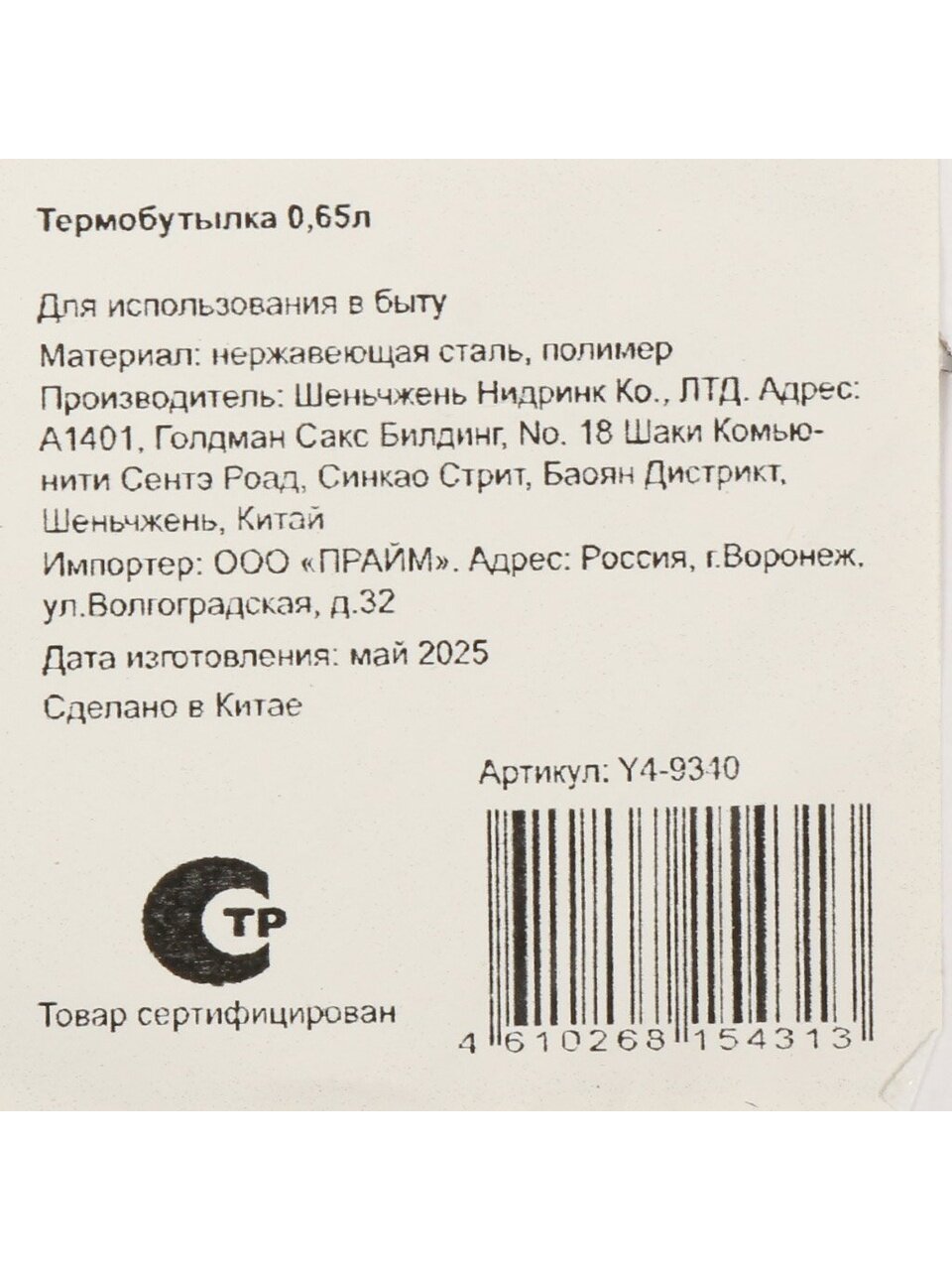 - Практичный объем 0.65 л и компактная высота 23.5 см — легко помещается в рюкзак или подстаканник автомобиля.