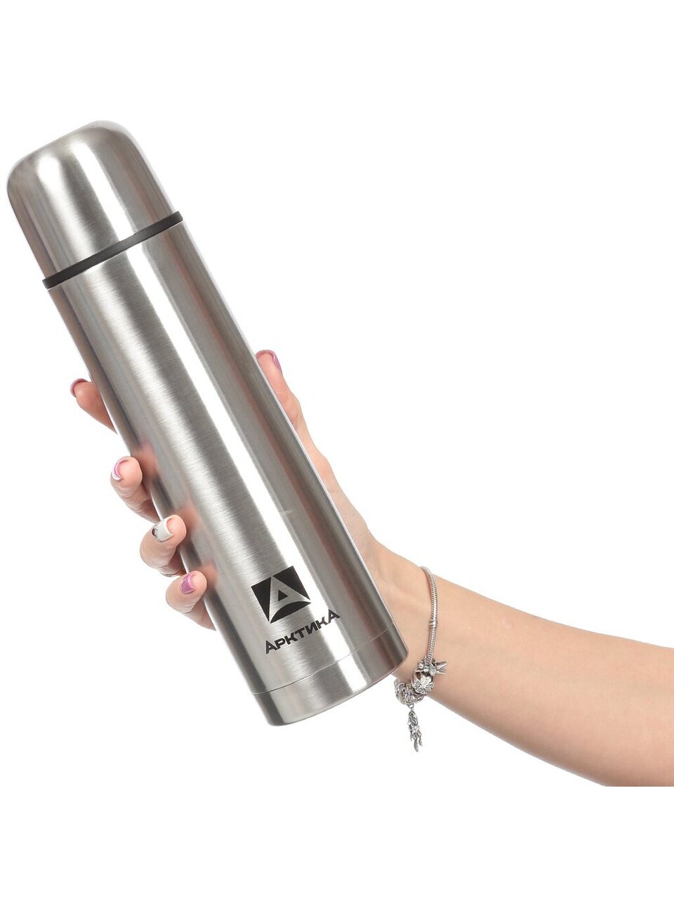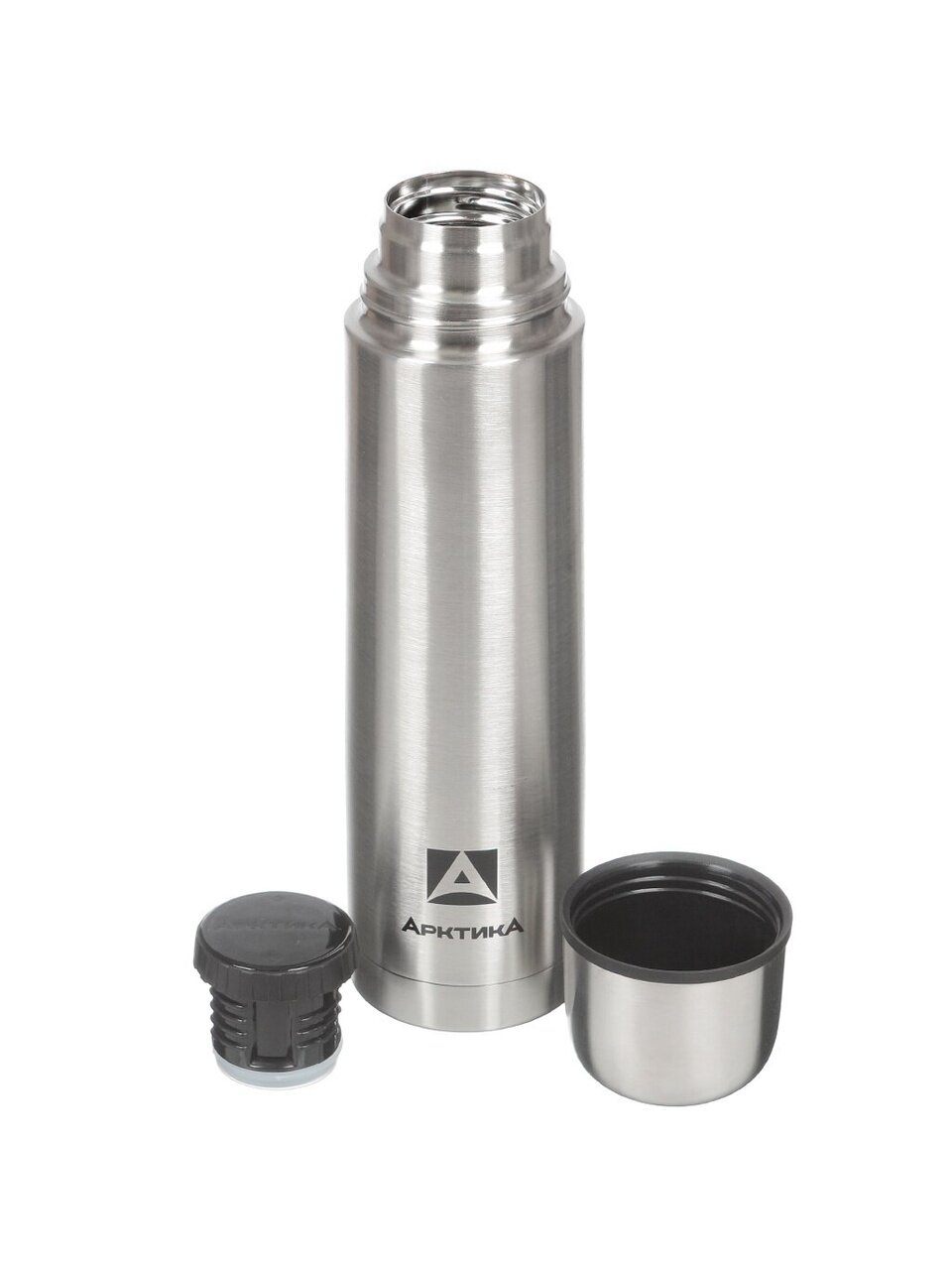 Термос Арктика 0.75 л из нержавеющей стали: сохраняет напитки горячими до 24 часов и холодными до 64 часов — для похода, работы и дома.
