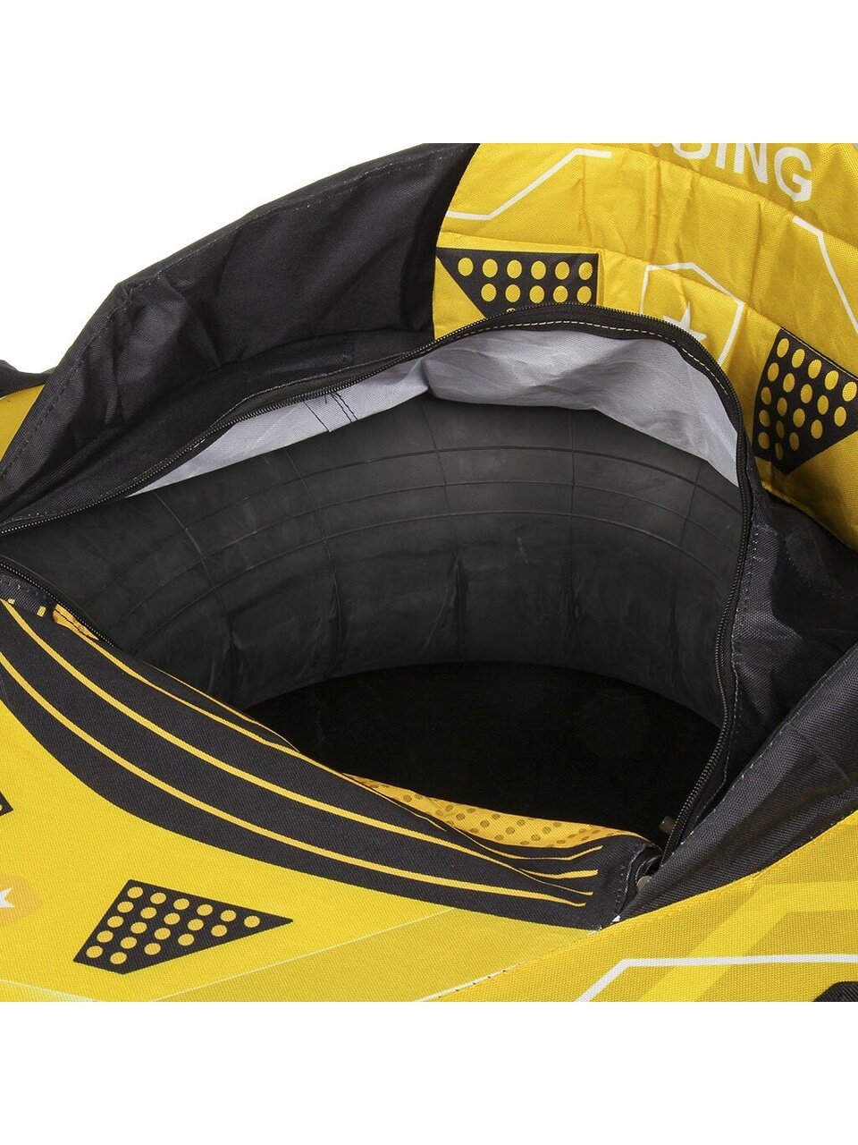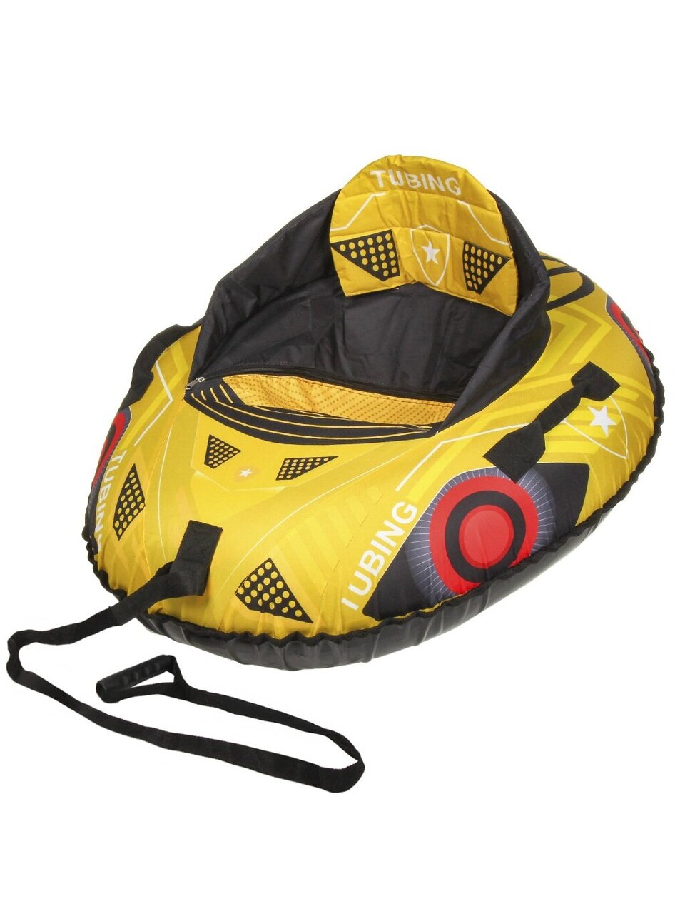 - Простота использования: наличие буксировочного троса облегчает перемещение ватрушки, а застежка на молнии позволяет быстро подготовить санки к использованию.