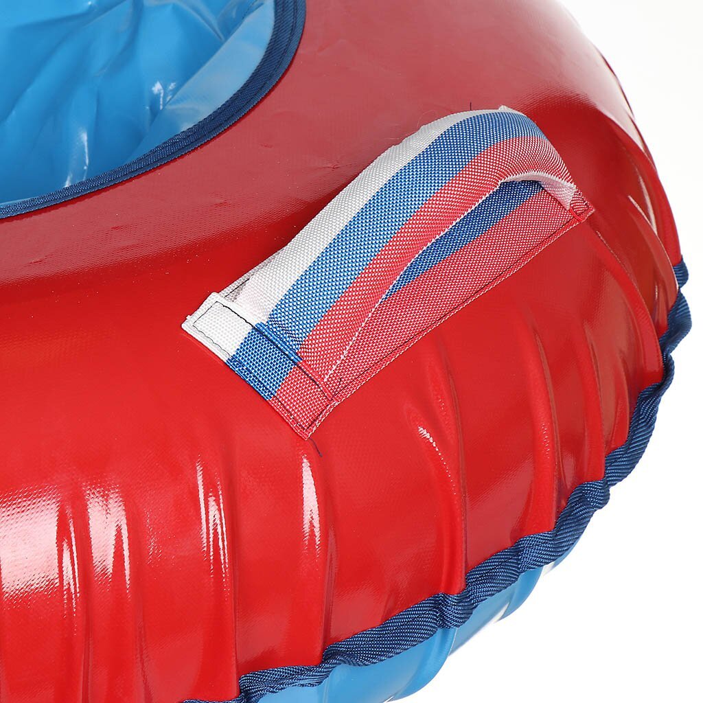 Применение специально разработанных материалов позволяет санкам приобретать повышенную прочность и надежность. Камера в верхней части защищена тканью, а снизу ПВХ материалом. Для катающегося предусмотрены две ручки из текстильных ремней. Ватрушка тюбинг в сдутом виде очень компактна.