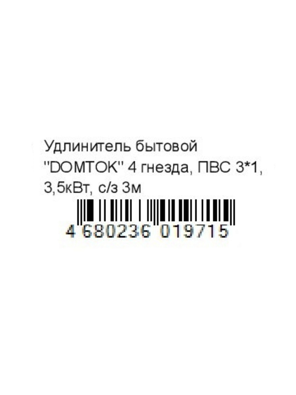 Удлинитель Domtok 2396 на 4 розетки, 3 м, 3500 Вт: безопасное подключение для дома и дачи по выгодной цене