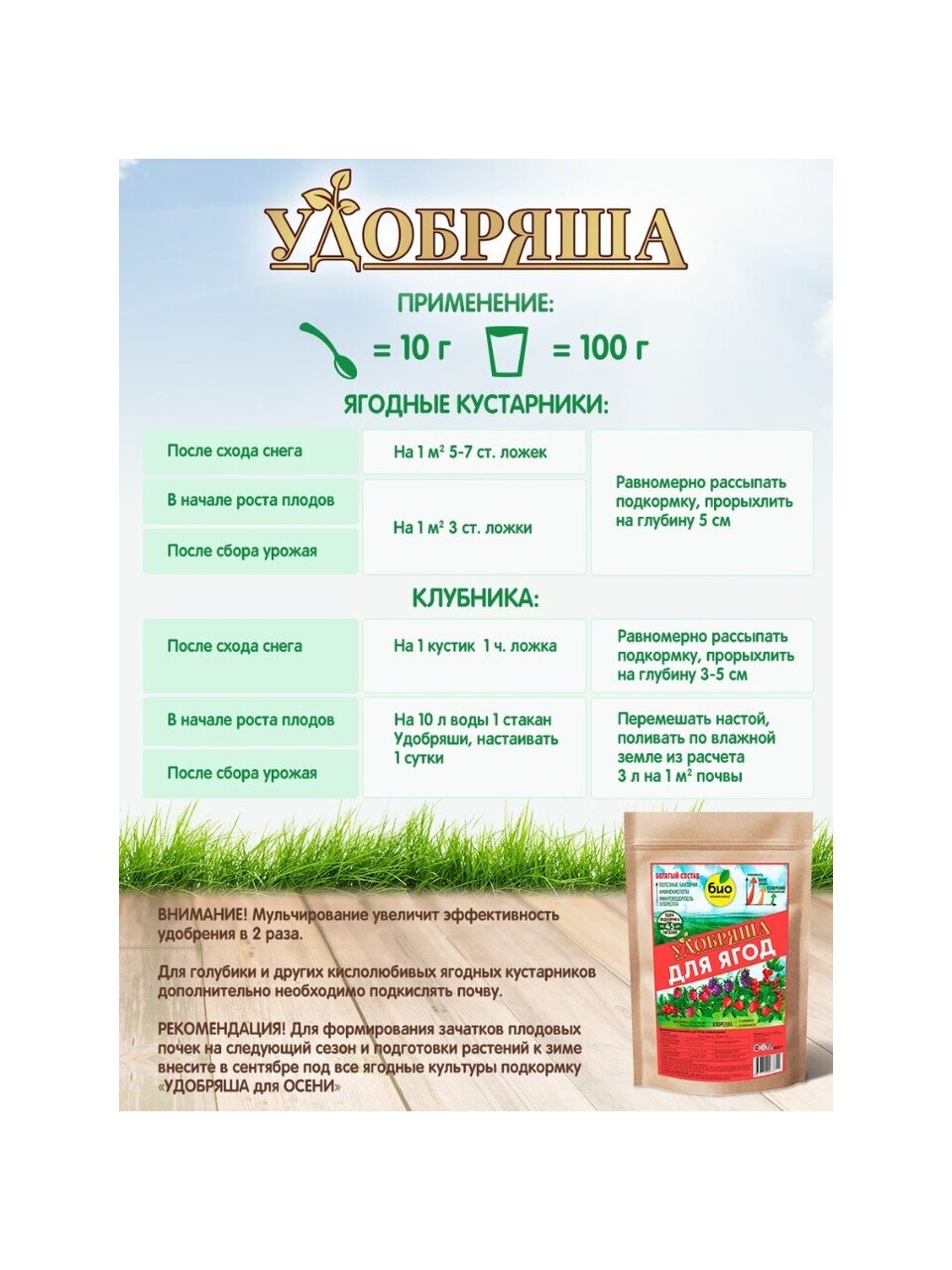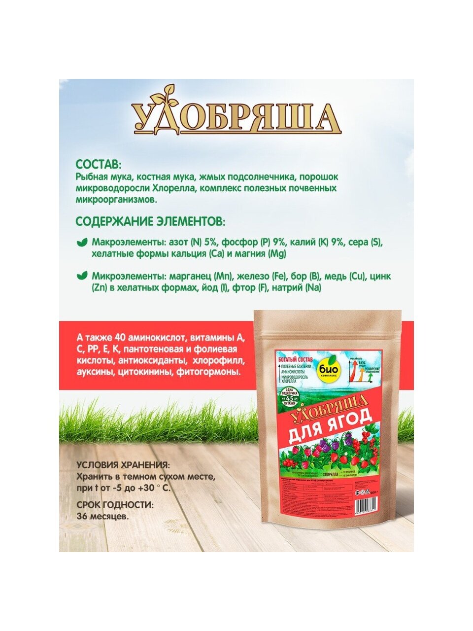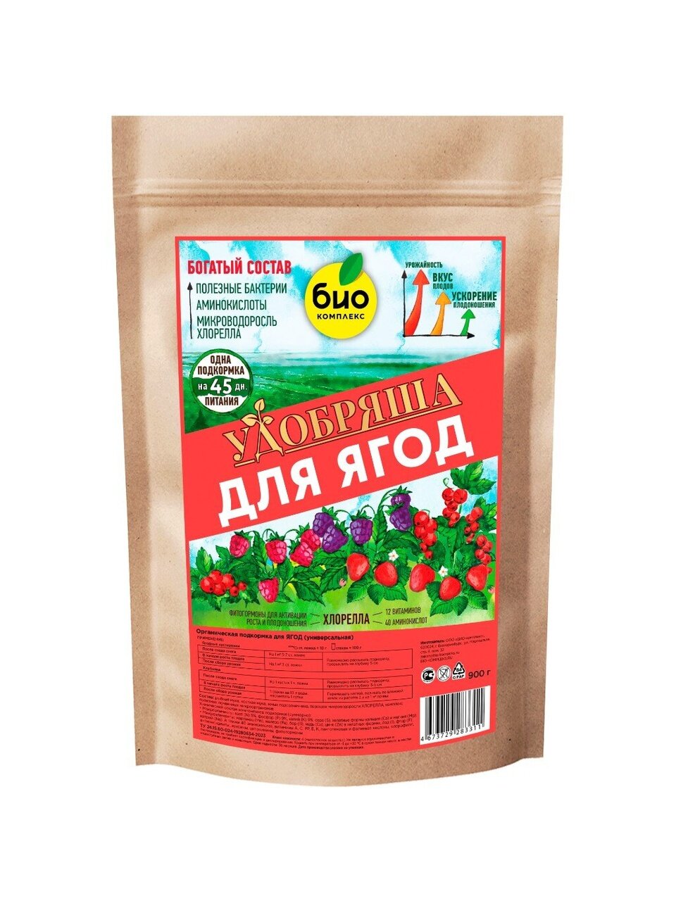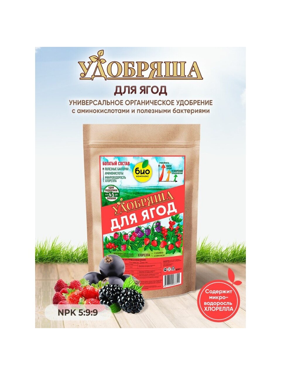 "Удобряша" для ягод – это органическое удобрение с аминокислотами и полезными почвенными бактериями. Разработано с учетом потребностей в питании всех видов ягодных культур: земляника, клубника, смородина, крыжовник, жимолость, малина и голубика.