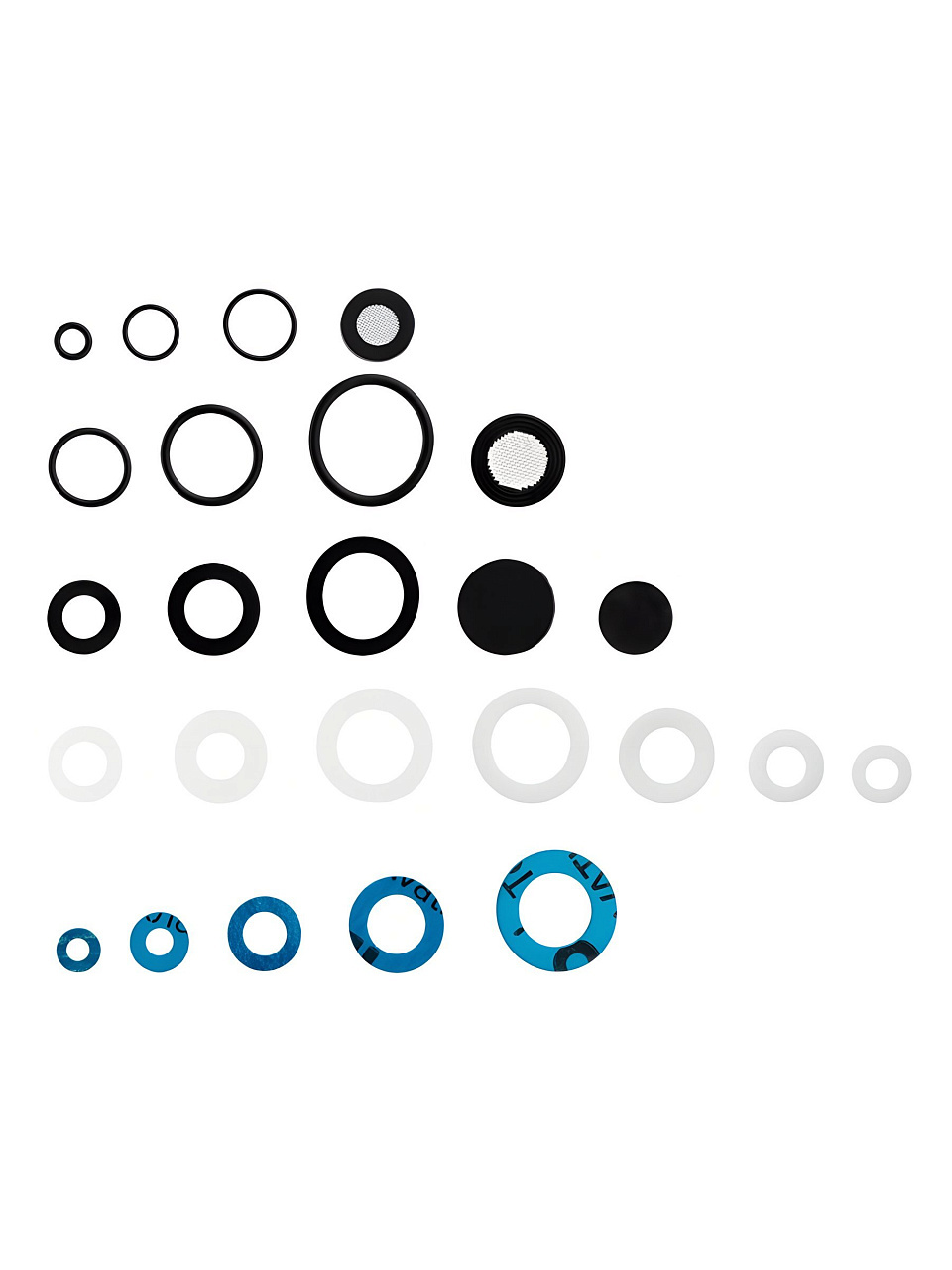 В наборе представлены стандартные размеры прокладок для большинства сантехнических соединений. Материал — износостойкая резина, цвет — чёрный, артикул — ИС.131977.
