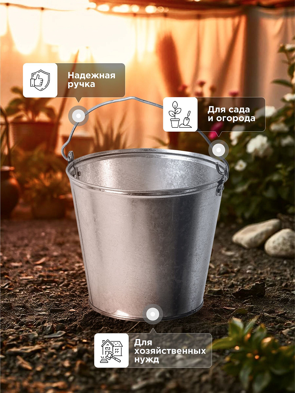 Ведро оцинкованное 15 л ГОСТ (Пермь): удобное решение для хозяйства и дачи — долговечный металл, оптимальный объём, не боится ржавчины.