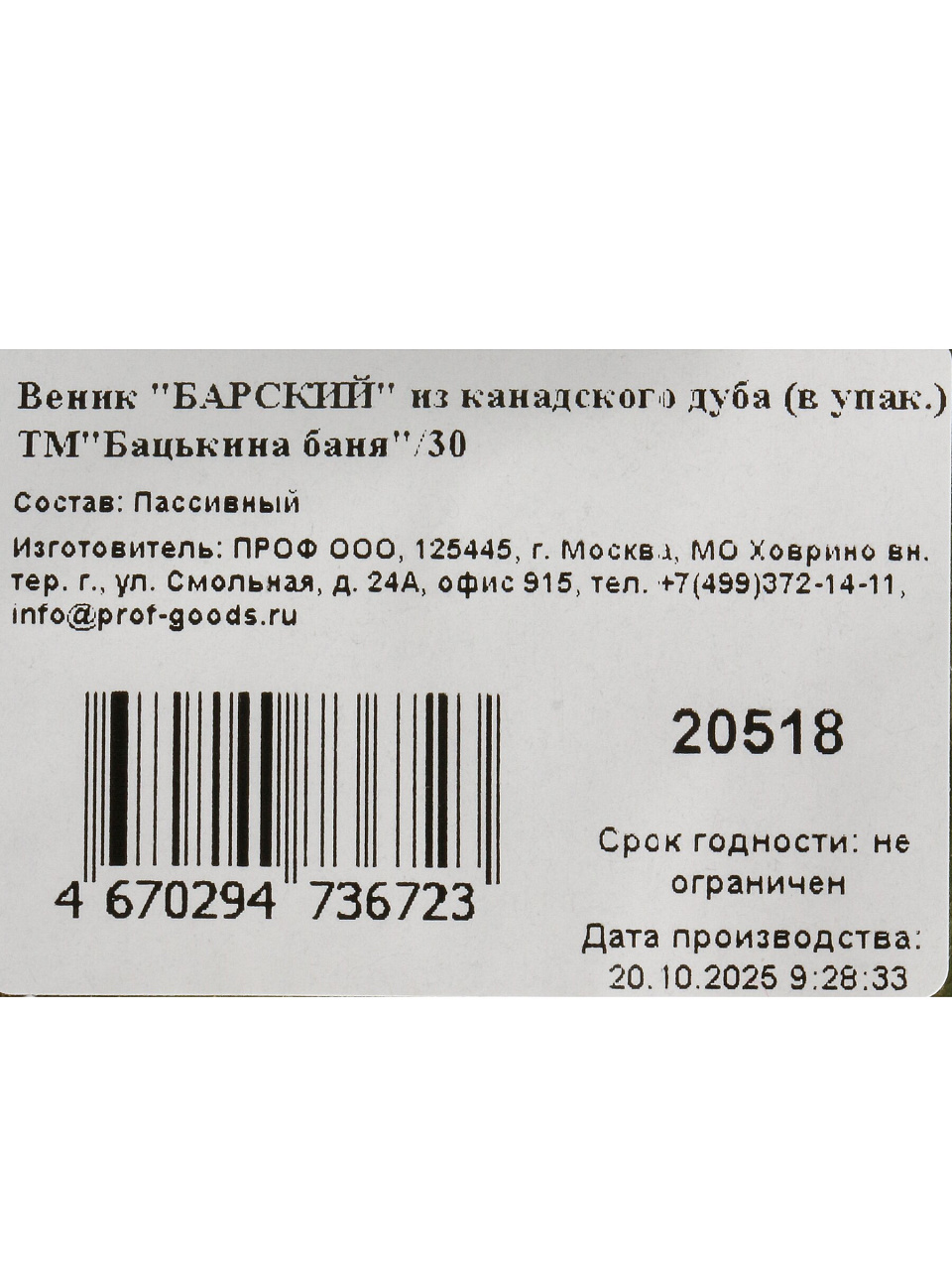 - Долгий срок службы — плотная структура дубовых листьев, равномерная сушка и упаковка сохраняют свойства веника до 12 месяцев