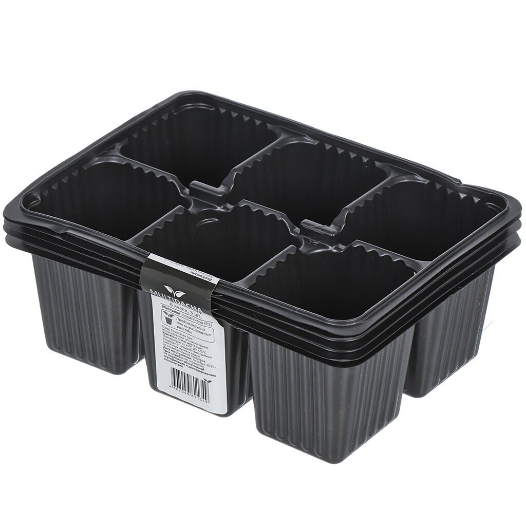 Кассеты для рассады, набор из 5 штук по 6 ячейки в каждой. Идеально подходят для выращивания рассады различных растений в домашних условиях или теплице. Изготовлены из прочного пластика, обеспечивают хорошую вентиляцию и дренаж.