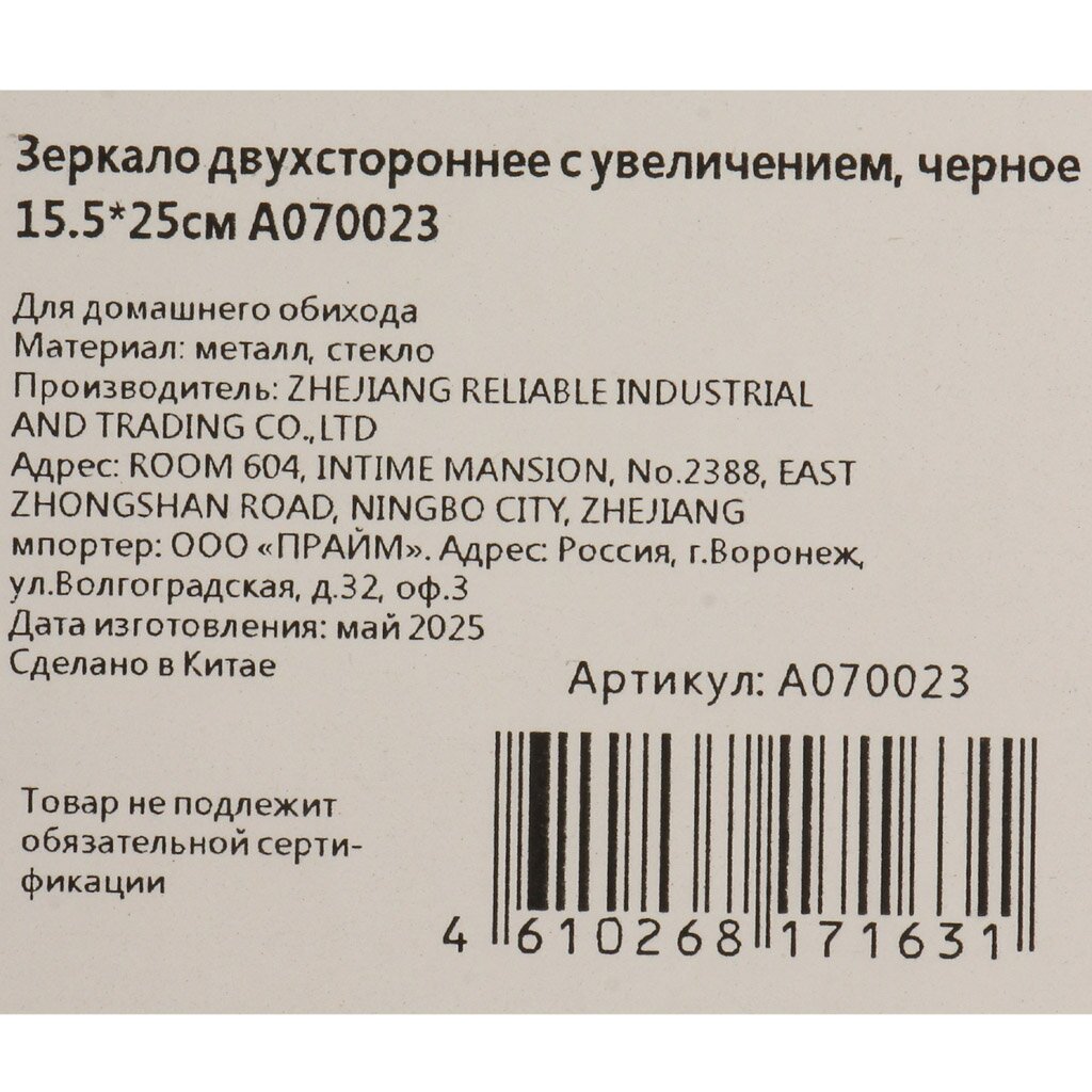 Зеркало настольное, 15.5х25 см, 2х стор, с увелич, чер, A070023