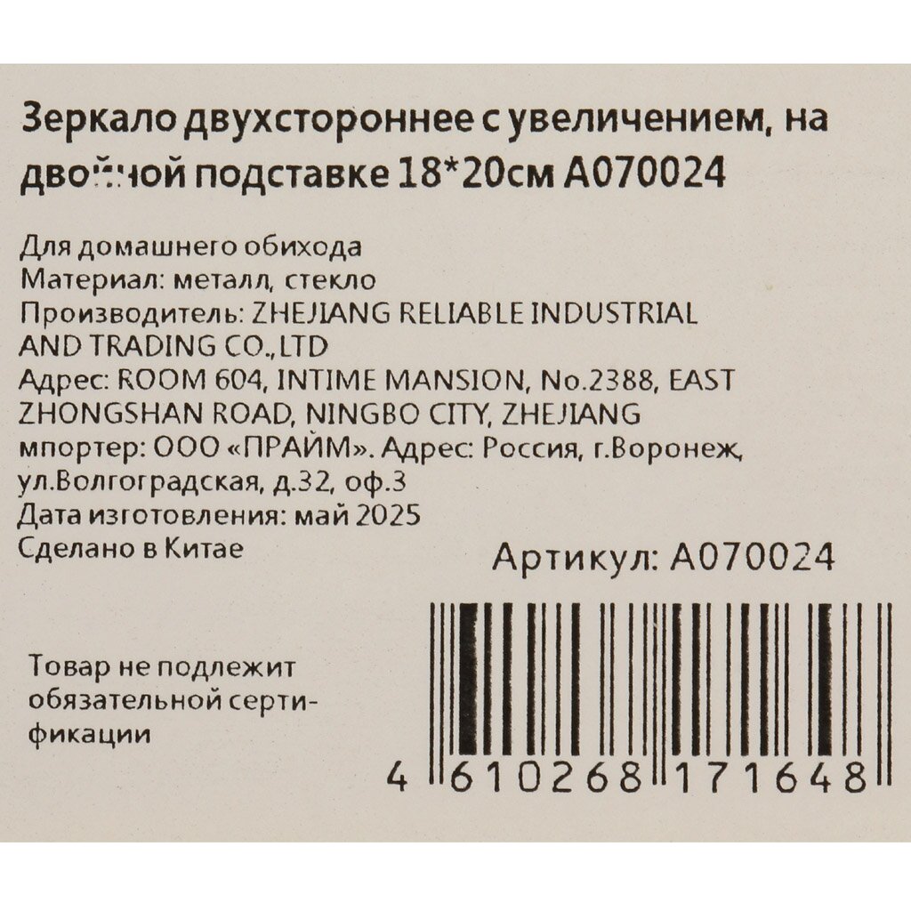 Зеркало настольное, 18х20 см, 2х стор, с увелич, на двойной подставке, A070024
