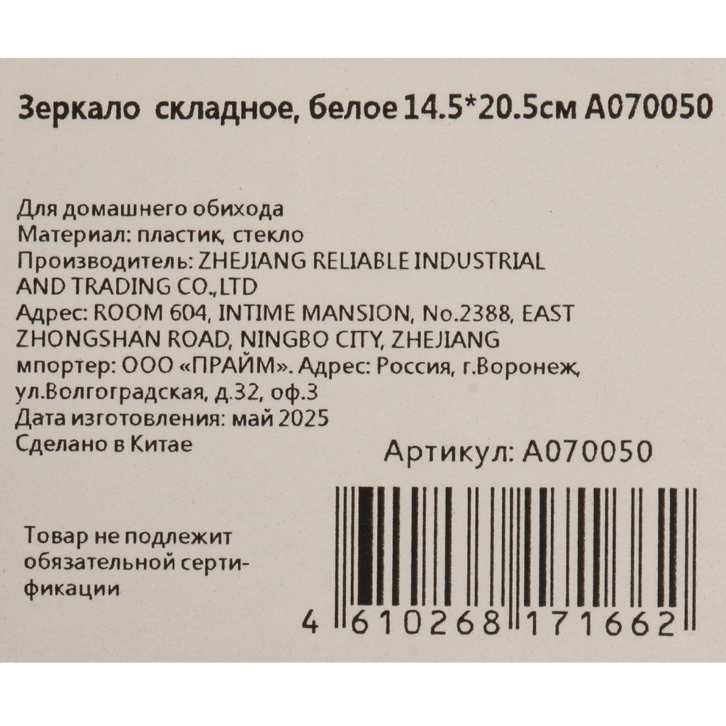 Зеркало складное, 14.5х20.5 см, бел, A070050