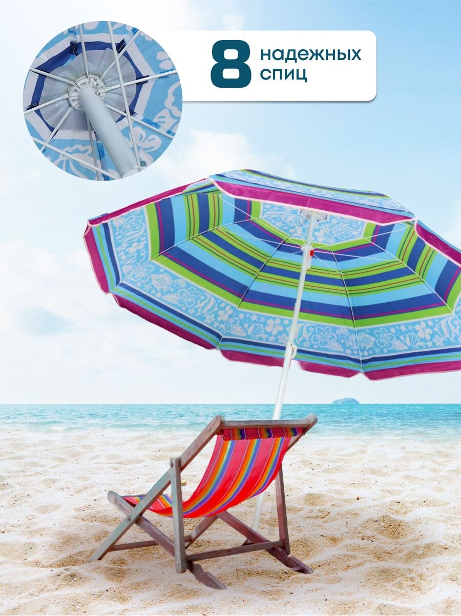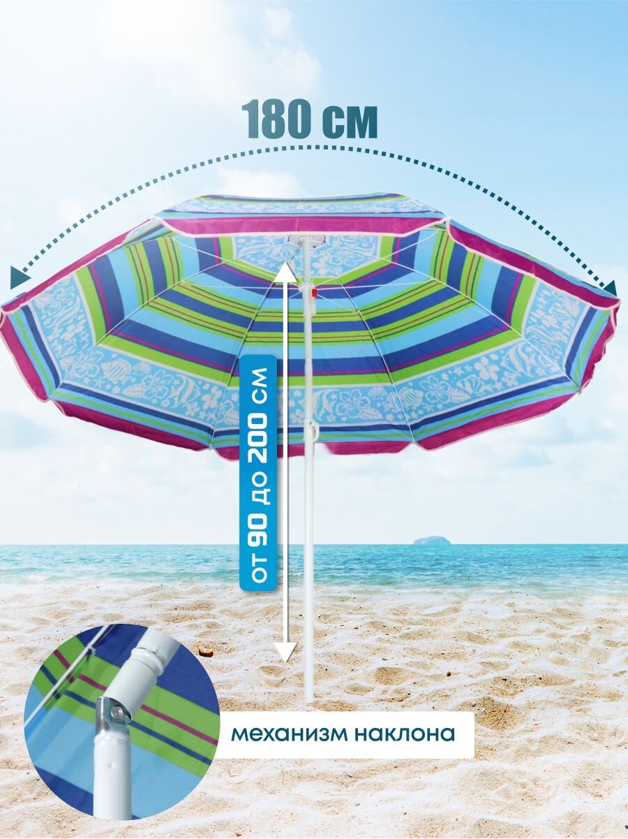 Стильный и функциональный пляжный зонт LG04/2 обязательно пригодится Вам не только на морском побережье, но и в загородной поездке или на приусадебном участке. Это незаменимый аксессуар для организации пространства для детских игр на свежем воздухе в летний день. Просторный купол 180 см сможет создать уютную тень, в которой без труда разместятся 2 взрослых человека. Проводите время на природе с максимальным комфортом, невзирая на палящее солнце или дождь.