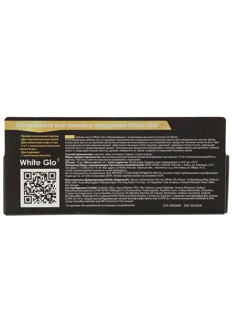 Ощути свежесть и уверенность с зубной пастой White Glo отбеливающей с кокосовым маслом, 24 г. Специальная формула помогает поддерживать белизну зубов, придавая улыбке сияние. Кокосовое масло в составе способствует бережному уходу за полостью рта. Идеальный выбор для тех, кто заботится о здоровье зубов и хочет быстро добиться видимого результата.
